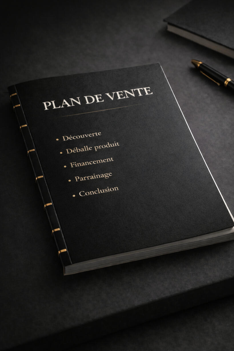 Un plan de vente personnalisé permet de structurer votre système commercial. De la prise de rendez-vous à la signature de la vente, cet outil accompagne vos commerciaux en leur permettant de suivre une trajectoire précise et définie.Votre discours de vente est uniformisé, la présentation de vos produits est optimisée, le financement et le parrainage deviennent systématiques.Pour votre entreprise, cela se traduit par un taux de signature plus régulier, vos marges sont préservées et l'intégration des nouveaux commerciaux est simplifiée.Pour vous, c’est la fin du pilotage à vue : la croissance devient mesurable, les décisions sont prises sur des indicateurs clairs et le chiffre d’affaires repose sur un système maîtrisé.